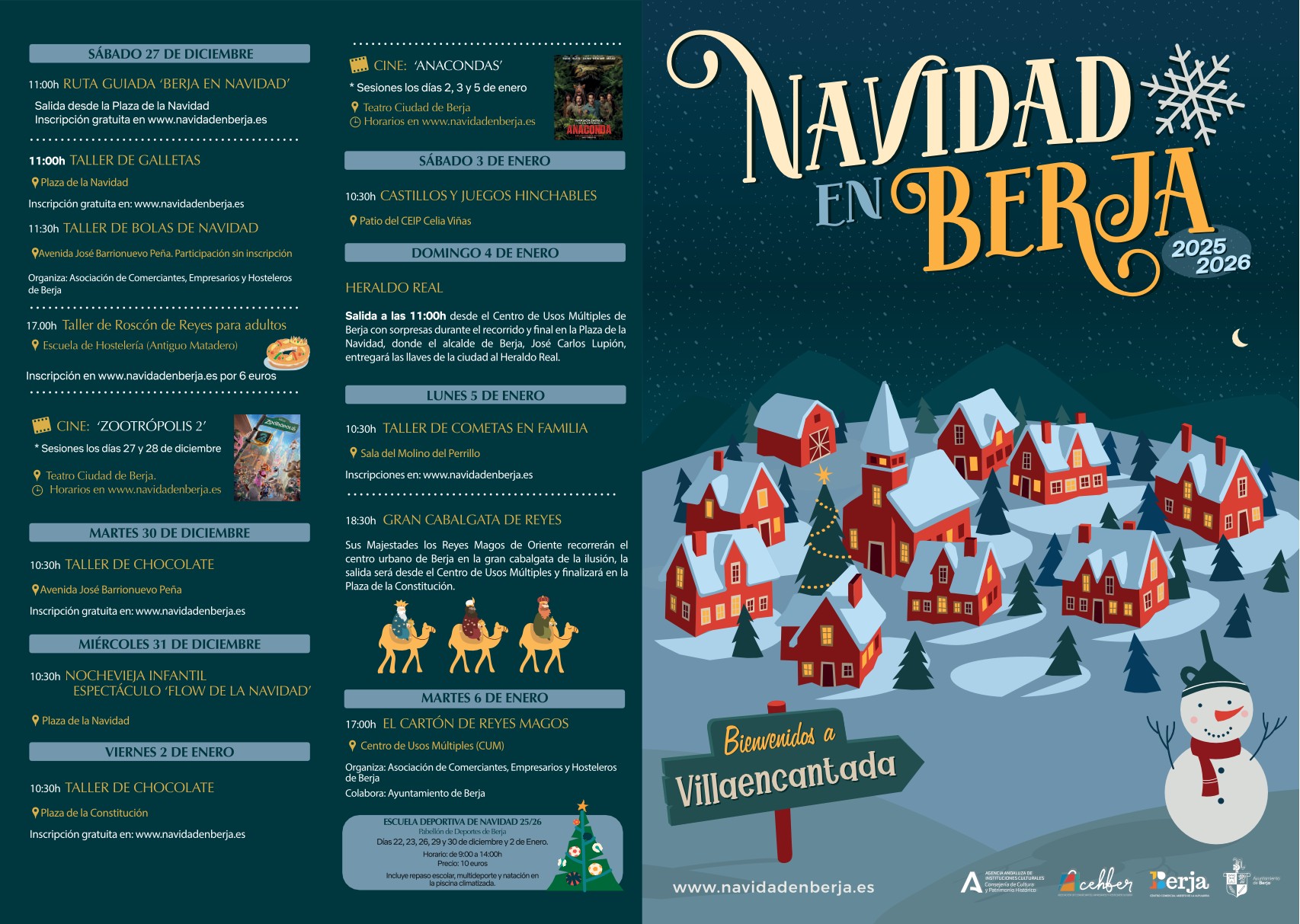 El Ayuntamiento de Berja ha presentado este lunes la programación oficial de Navidad 2025-2026, un calendario cargado de propuestas culturales, infantiles y tradicionales que llenarán las calles de la ciudad de ambiente navideño desde el 3 de diciembre hasta el 6 de enero.