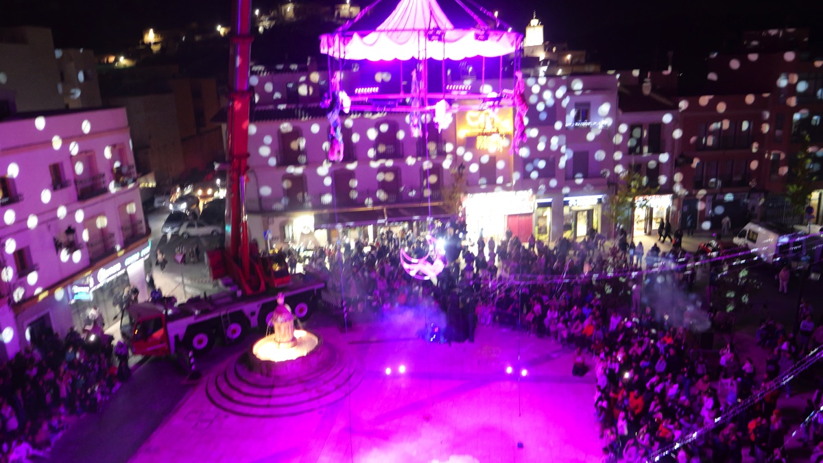 Tras el encendido, la celebración se trasladó a la Plaza de la Constitución, donde dio comienzo un impresionante espectáculo aéreo a cargo de Hypnos, que dejó a los asistentes sin palabras gracias a su puesta en escena llena de luz, música y acrobacias.