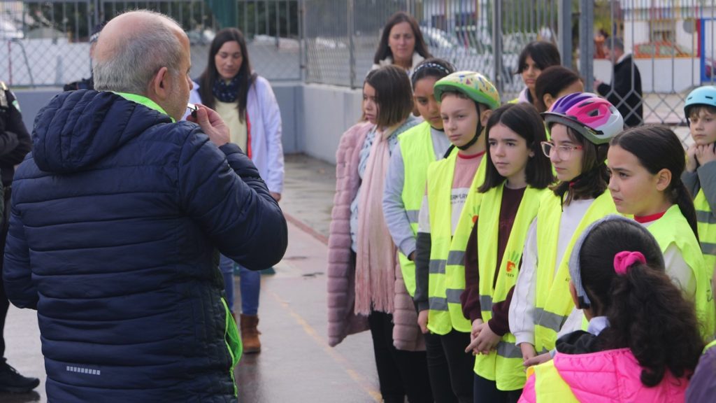 Más de 300 alumnos del CEIP Celia Viñas participaron en el arranque de esta iniciativa impulsada por Fundación Michelin y AIPSEV, con la colaboración de la Policía Local y el respaldo del Ayuntamiento